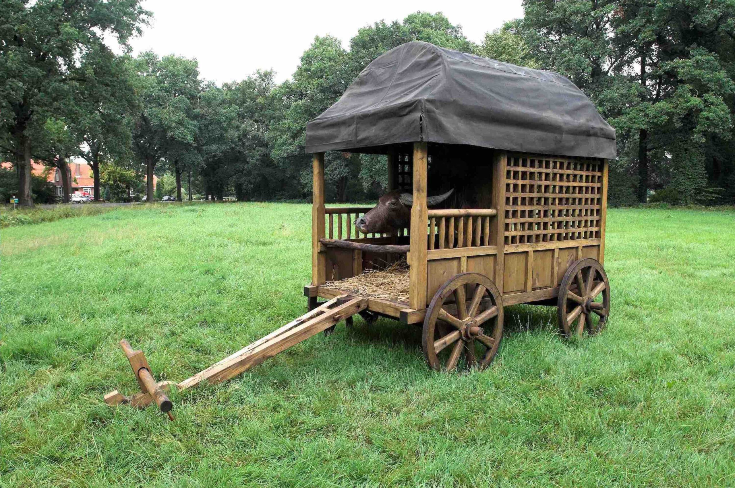 Wood, iron, paper, fiberglass, calfskin leather, taxidermy dog