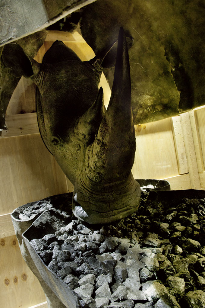 Wood, metal, taxidermy animals, fiberglass, oilcloth