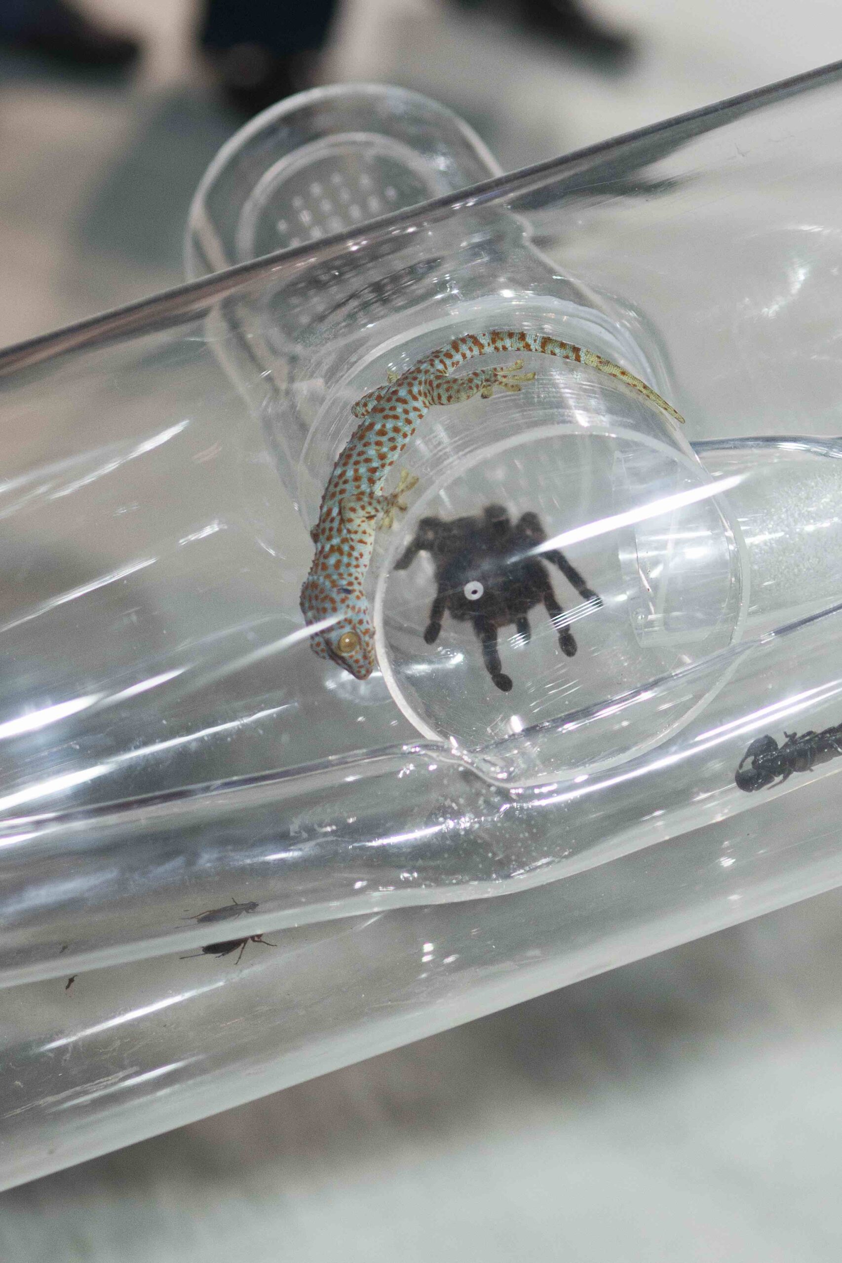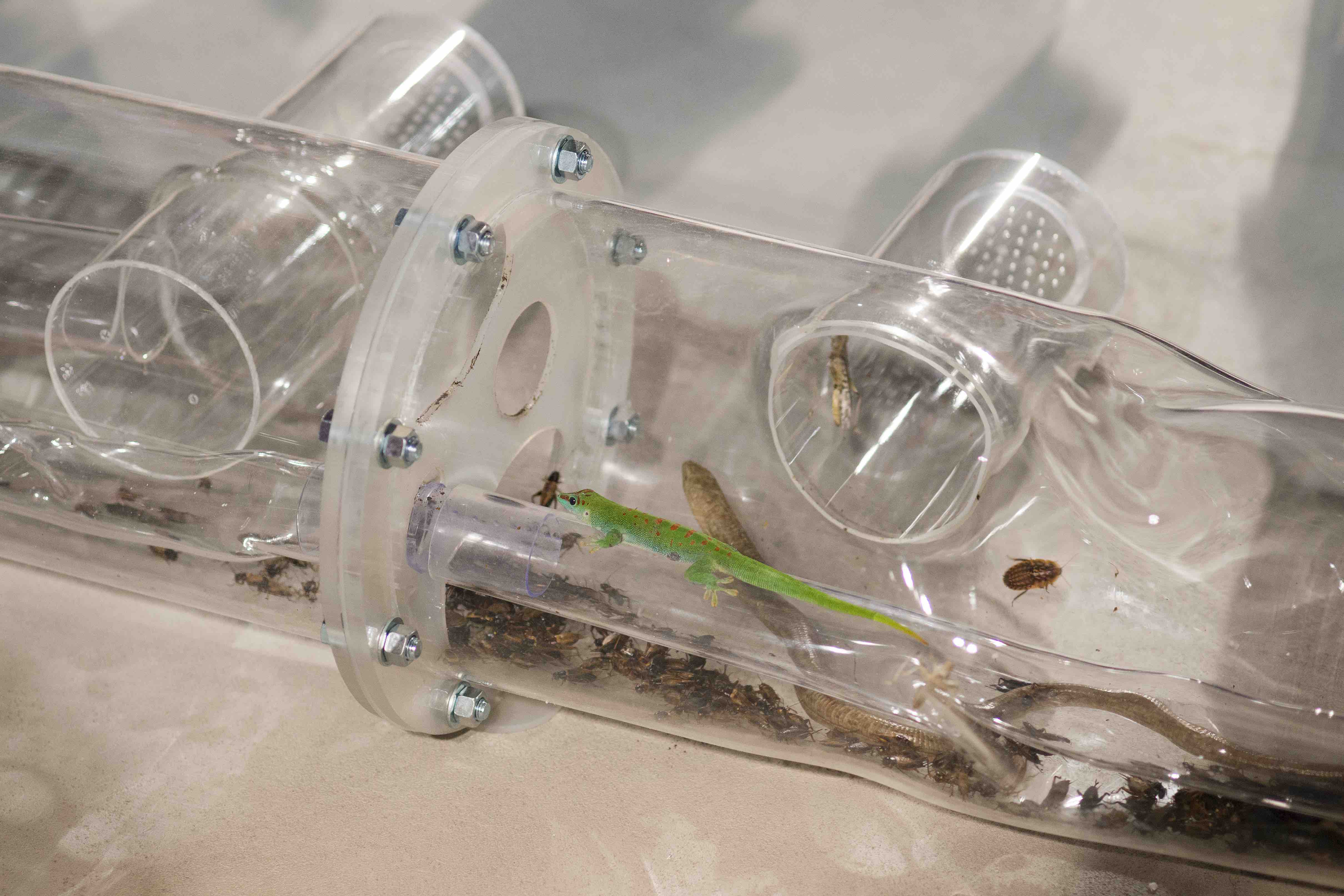 Plexiglass, metal, living insects and animals (lizards, milipedes, crickets, cockroaches, beetles, grasshoppers, snakes, scoprions, tanrantulas)